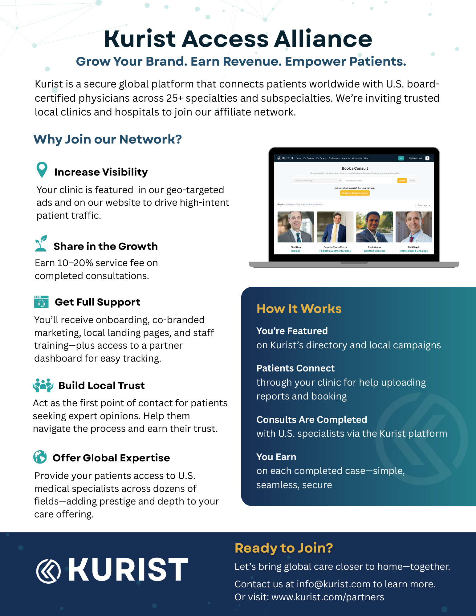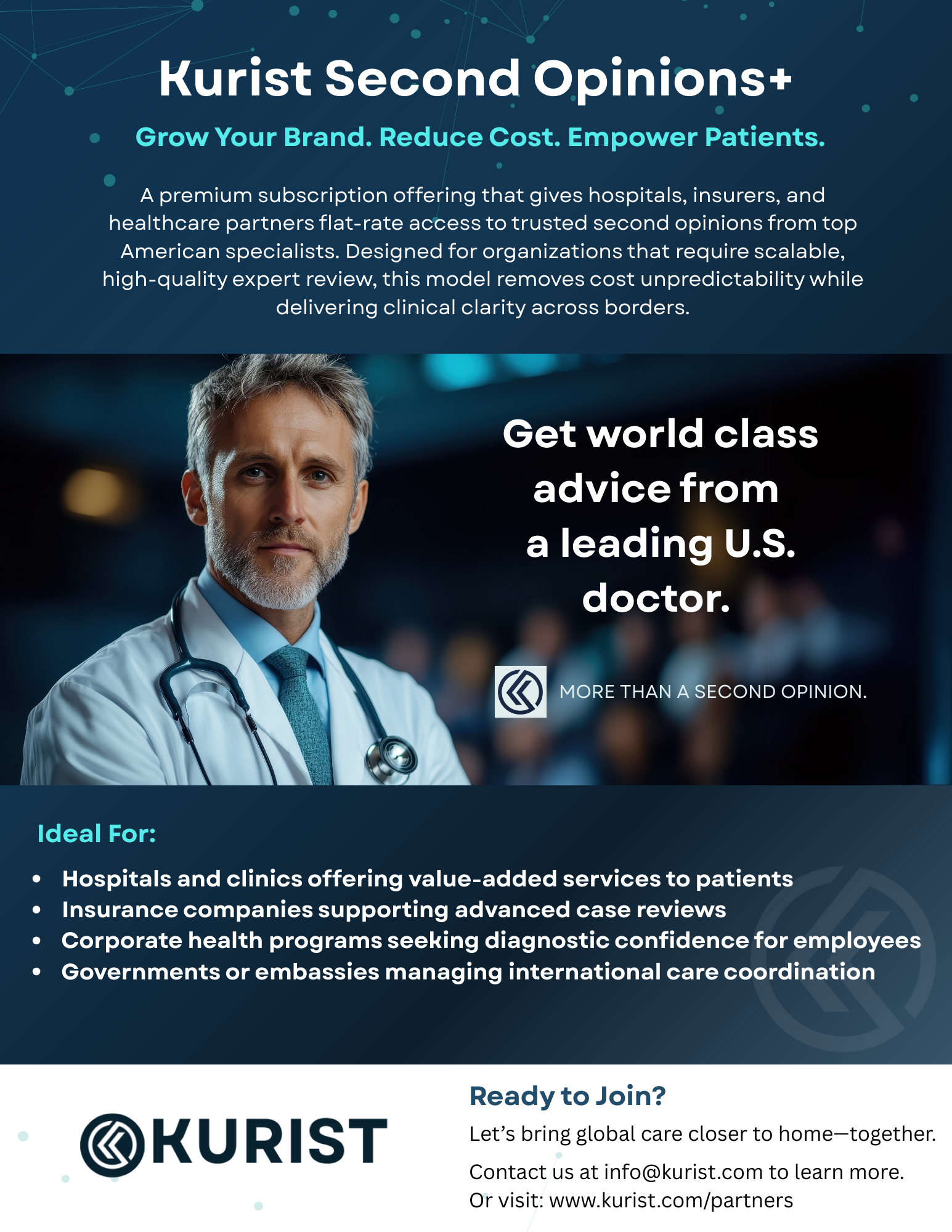 Kurist is the secure global platform for cross-border second opinions and medical consultations. We help hospitals, clinics, and partners: